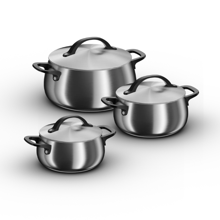 A premium BergHOFF set of pots and pans — a practical and beautifully designed foundation for everyday cooking in your new kitchen.